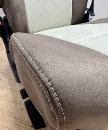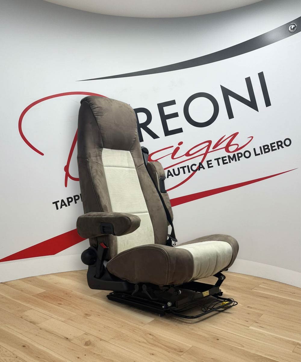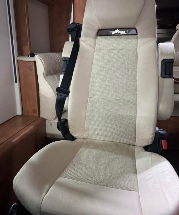 Coprisedile realizzato su misura per sedili Aguti, installati di serie su molti motorhome, tra cui i modelli Carthago. Per garantire la compatibilità chiediamo sempre una foto del sedile originale prima della produzione.